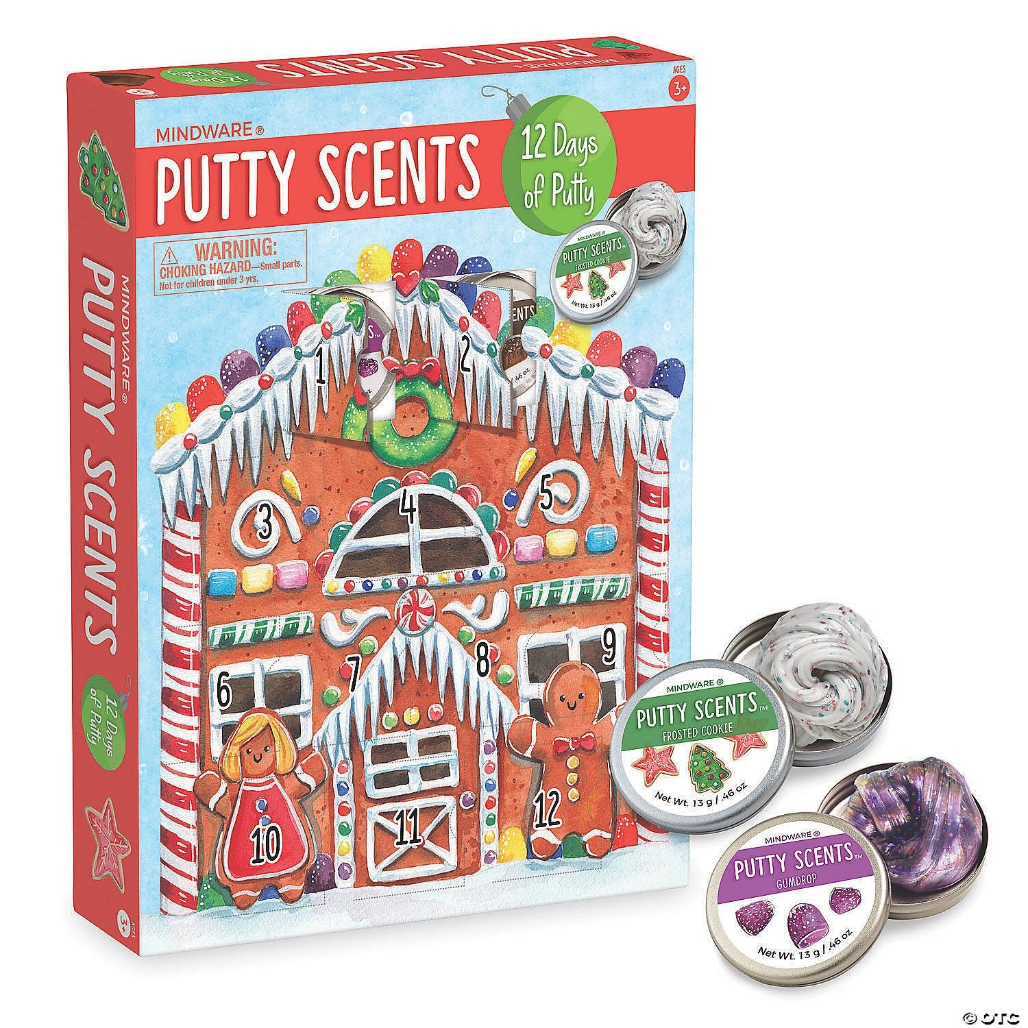¡Celebre la temporada con esta cuenta regresiva interactiva de 12 días! Detrás de cada una de las 12 ventanas hay una lata coleccionable diferente con cierre hermético que contiene 0,46 onzas de masilla perfumada y brillante en su interior. Putty Scents es un tipo irresistible de masilla divertida amada por niños y adultos, con colores y aromas de alta calidad, textura deliciosa y cualidades duraderas. Cree recuerdos usando el calendario en familia o regálelo a un niño en particular. Con aromas inspirados en las fiestas, como gomitas y galletas heladas, podrás amasar, estirar, romper, enrollar y disfrutar durante toda la temporada.• Añade un poco de diversión a tu cuenta atrás para las fiestas: ¡este calendario 3D viene con 12 latas individuales de masilla perfumada y brillante! • Alta calidad, con colores vivos y aromas festivos • Calmante, divertido y divertido tanto para niños como para adultos • Fácil de llevar a todas partes: las hermosas latas evitan que la masilla se seque • Sin gluten y elaborado con ingredientes no tóxicos (silicona aceite, dióxido de silicio, ácido bórico, pigmentos y fragancias).