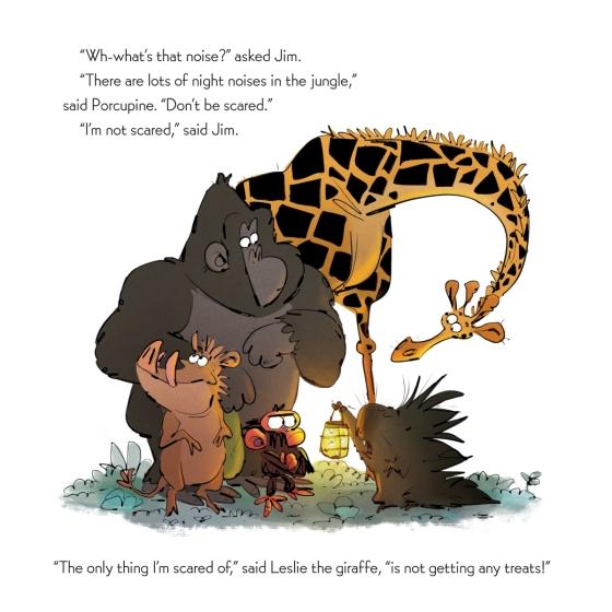 On the spookiest night of the year, Jim Panzee and his jungle friends brave the dark to collect treats. Not only does the jungle look different at night, it sounds different. What’s that knock-knock-knock and that HAHA HAHA HAHA? And the smell? PEE-YEW! “Don’t be scared,” they tell Jim. But then two glowing eyes flash overhead, and looking for treats is almost abandoned.